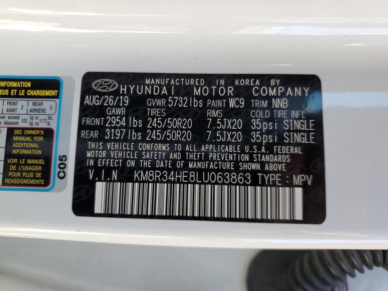 2020 HYUNDAI PALISADE 2020 року Бензин, 3.8, , vin - KM8R34HE8LU063863 из США