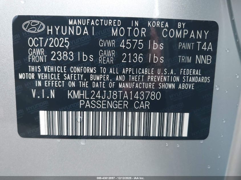 2026 HYUNDAI SONATA 2026 року Гибрид, 2.0, Передний привод, vin - KMHL24JJ8TA143780 из США