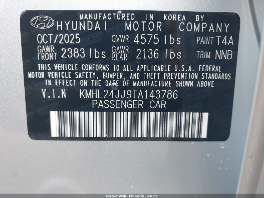 2026 HYUNDAI SONATA 2026 року Гибрид, 2.0, Передний привод, vin - KMHL24JJ9TA143786 из США