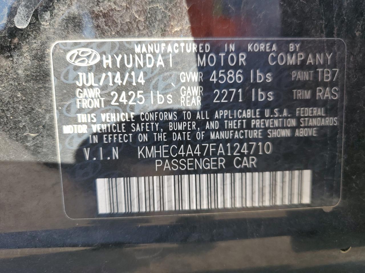 2015 HYUNDAI SONATA 2015 року Гибрид, 2.4, , vin - KMHEC4A47FA124710 из США