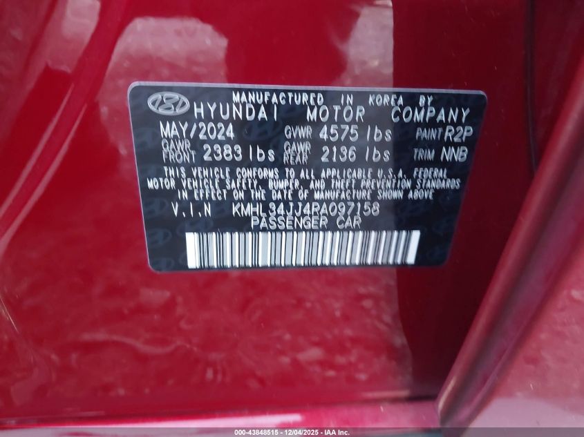 2024 HYUNDAI SONATA 2024 року Гибрид, 2.0, Передний привод, vin - KMHL34AJ4RA097158 из США