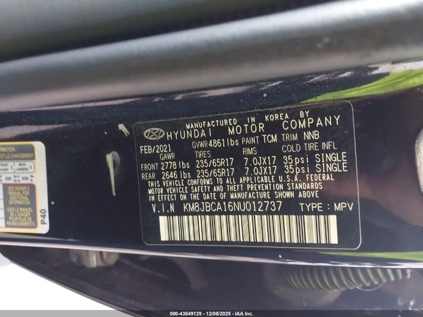 2022 HYUNDAI TUCSON 2022 року Гибрид, 1.6, Полный привод, vin - KM8JBCA16NU012737 из США