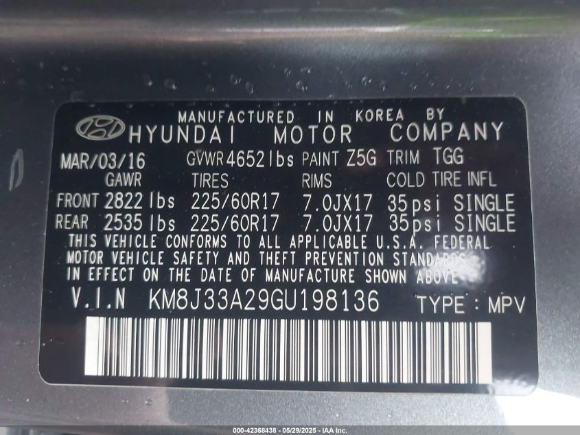 2016 HYUNDAI TUCSON LIMITED