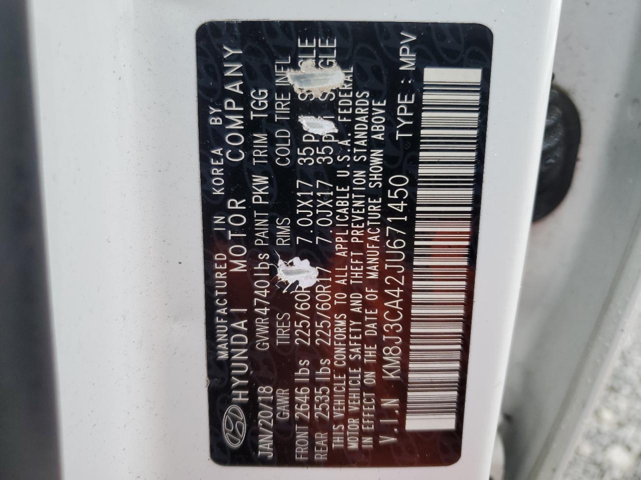 2018 HYUNDAI TUCSON 2018 року Бензин, 2.0, Полный привод, vin - KM8J3CA42JU671450 из США