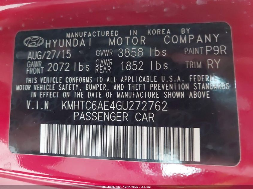 2016 HYUNDAI VELOSTER TURBO
