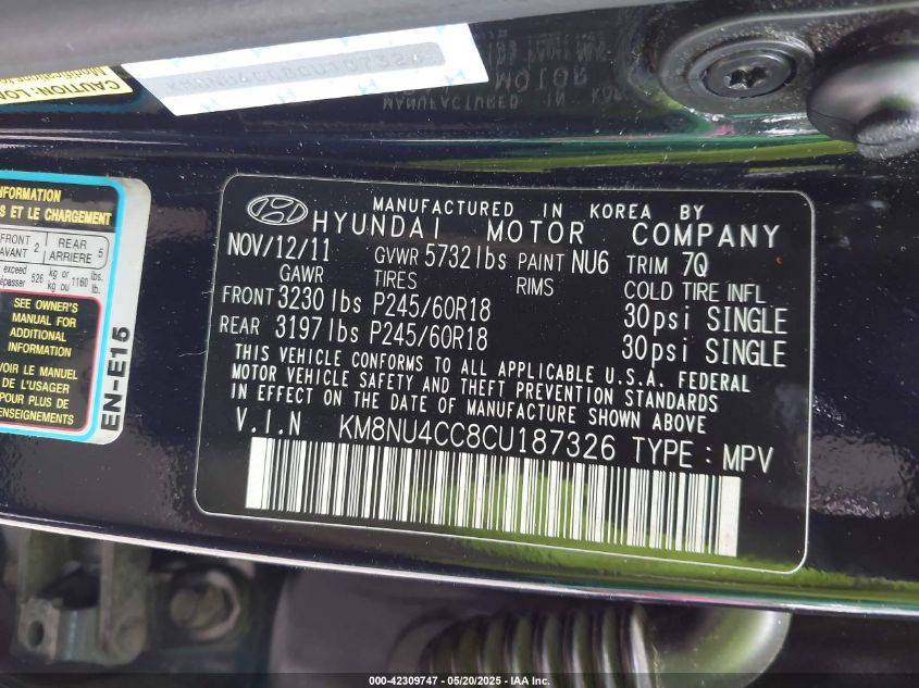 2012 HYUNDAI VERACRUZ GLS