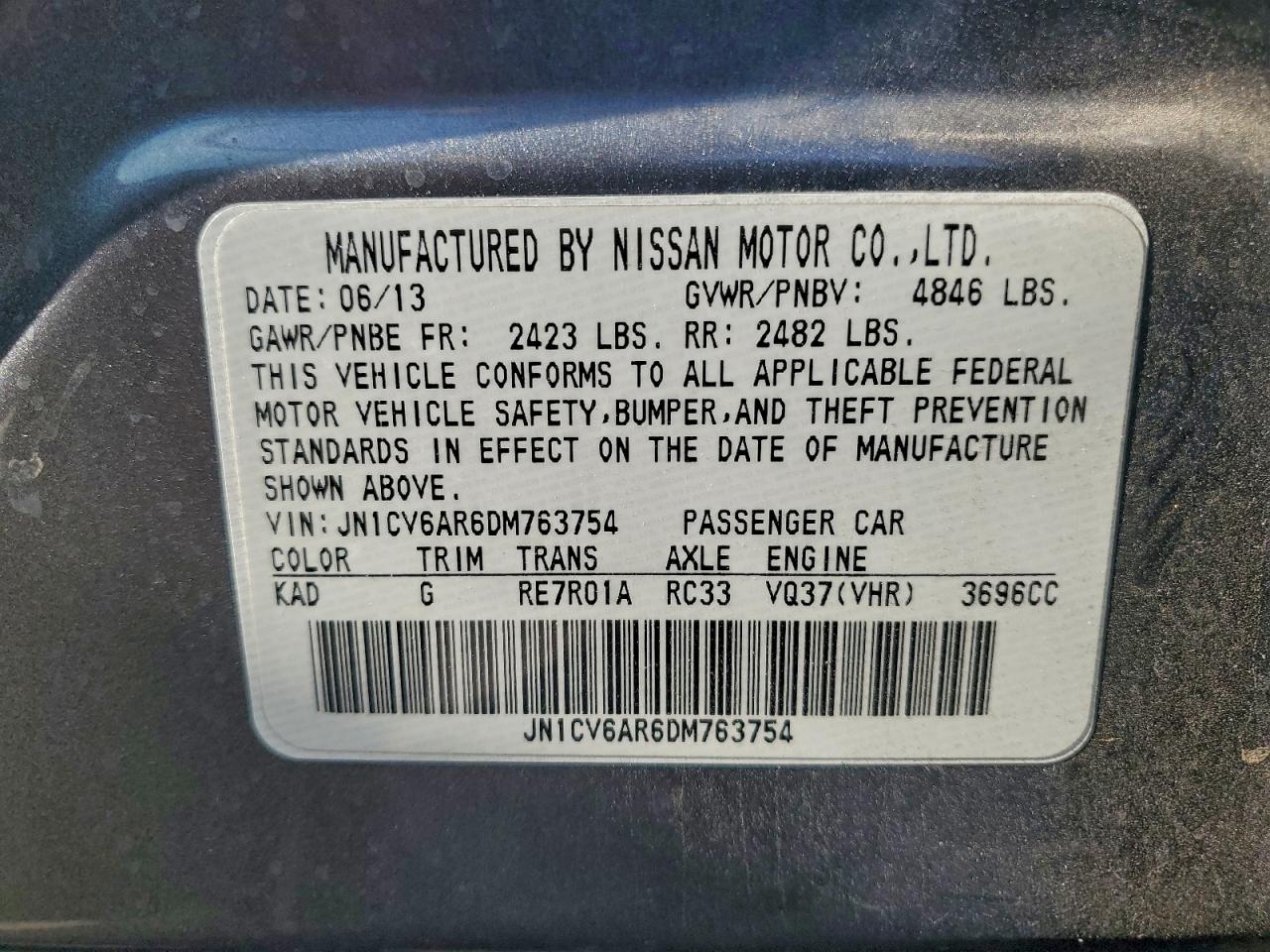 Цвет СерыйЦилиндры 6Привод Полный приводVIN JN1CV6AR6DM763754Состояние Заводится и едет (проверено)Повреждения Задняя AutoRIA