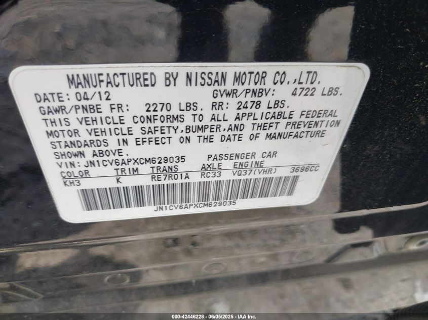 Цвет ЧерныйЦилиндры 6Привод Задний приводVIN JN1CV6APXCM******Состояние НеизвестноПовреждения Передняя или задняяДата аукциона 2025-07-10