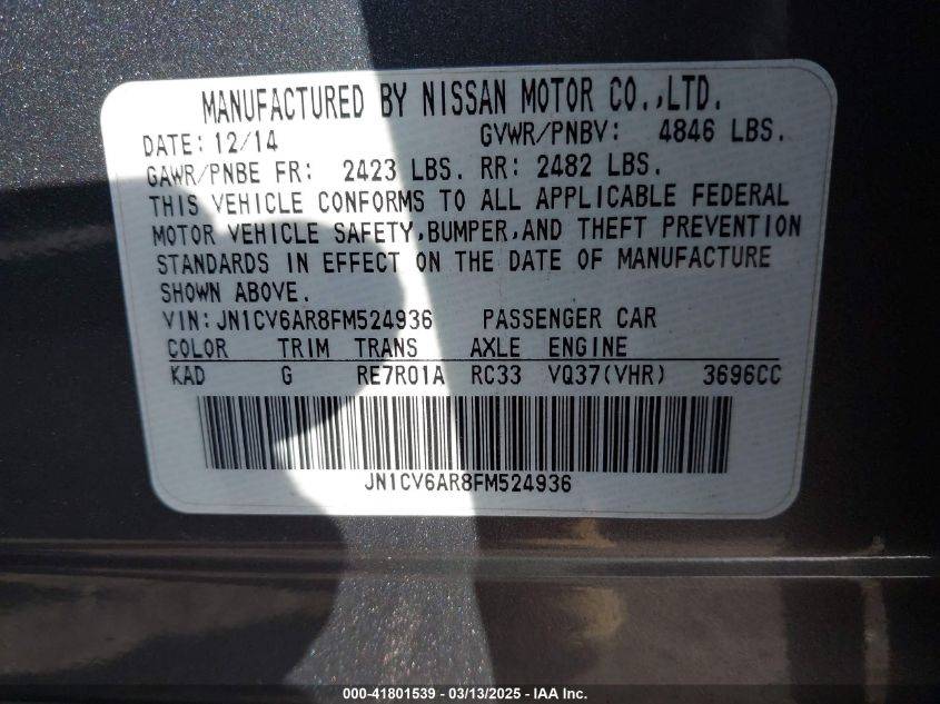 2015 INFINITI Q40 2015 року Бензин, 3.7, Полный привод, vin - JN1CV6AR8FM****** из США