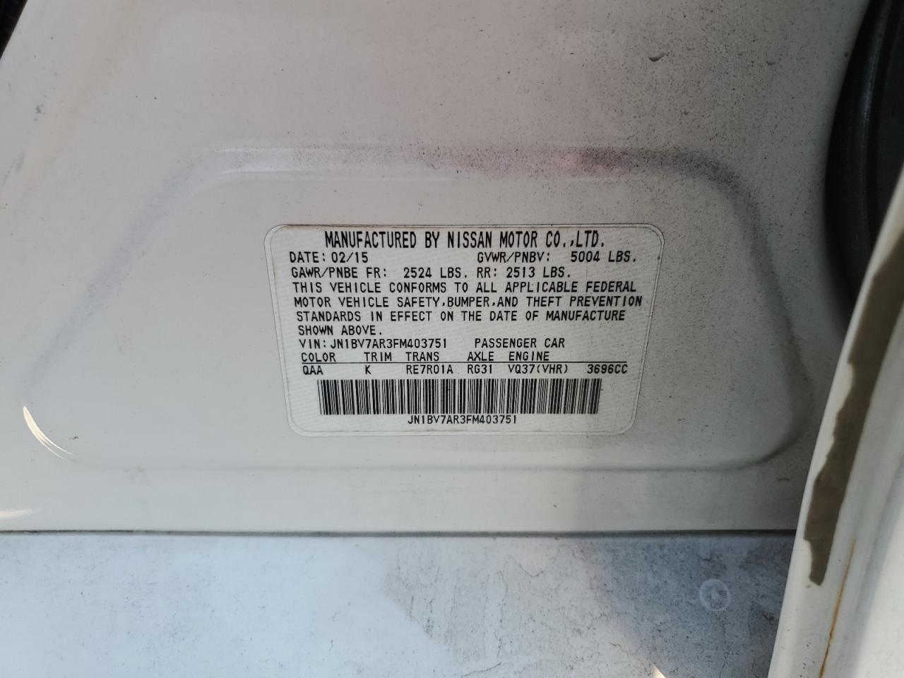2015 INFINITI Q50 2015 року Бензин, 3.7, Полный привод, vin - JN1BV7AR3FM403751 из США