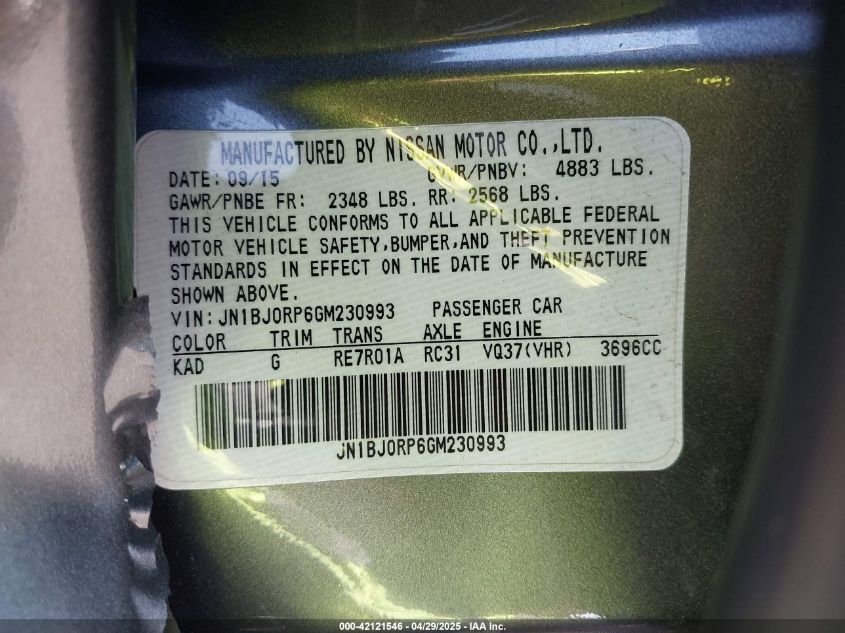 2016 INFINITI QX50 2016 року Бензин, 3.7, Неизвестно, vin - JN1BJ0RP6GM****** из США