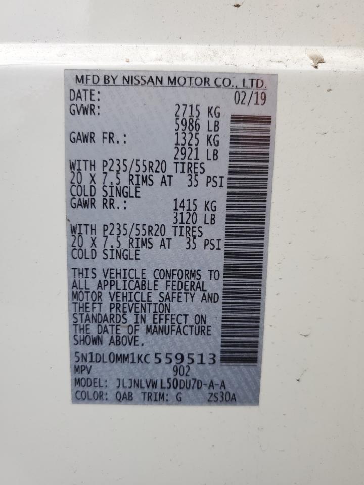 Цвет БелыйЦилиндры 6Привод Полный приводVIN 5N1DL0MM1KC559513Состояние Заводится и едет (проверено)Повреждения Передняя или задняя AutoRIA