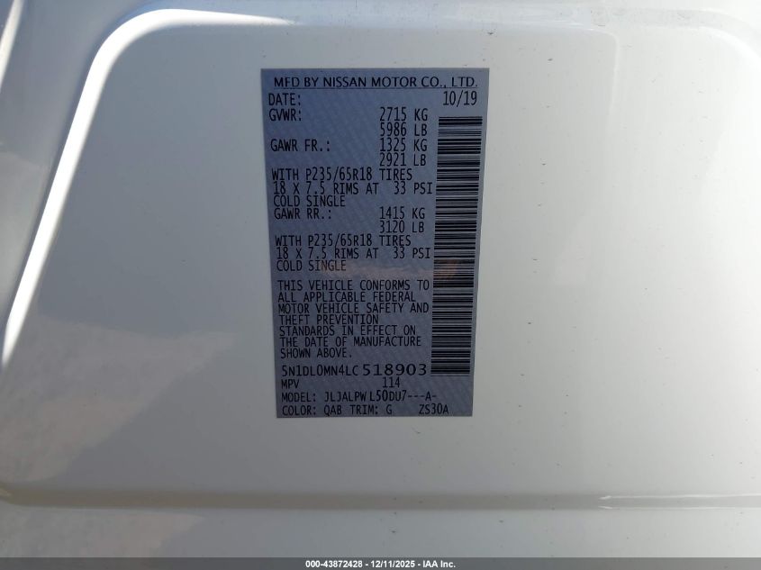 2020 INFINITI QX60 2020 року Бензин, 3.5, Передний привод, vin - 5N1DL0MN4LC518903 из США