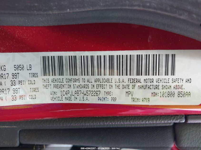 Цвет КрасныйЦилиндры 4Привод Передний приводVIN 1C4PJLAB7HW******Состояние НеизвестноПовреждения ЗадняяДата аукциона 2025-08-20