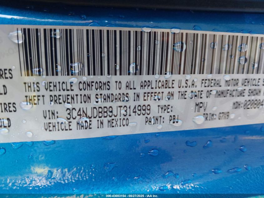 Цвет СинийЦилиндры 4Привод Полный приводVIN 3C4NJDBB9JT314999Состояние СтационарноПовреждения ЗадняяДата аукциона 2025-10-13