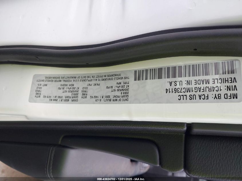 Цвет БелыйЦилиндры 6Привод Полный приводVIN 1C4RJFAG1MC736114Состояние ЗаводитсяПовреждения Передняя или задняя AutoRIA