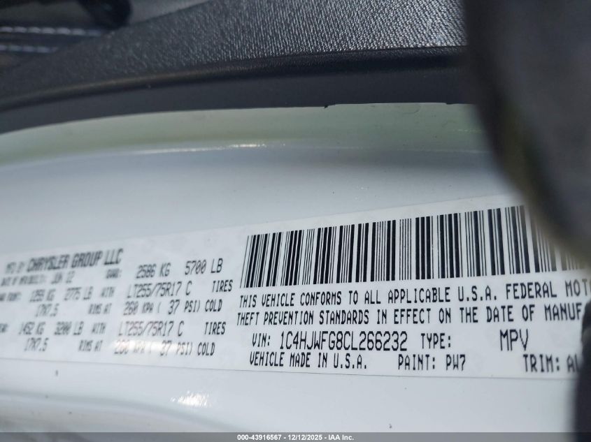 Цвет БелыйЦилиндры 6Привод Полный приводVIN 1C4HJWFG8CL266232Состояние Заводится и едет (проверено)Повреждения Задняя AutoRIA