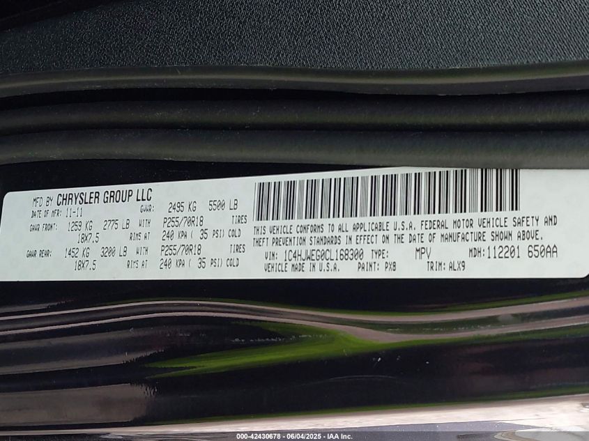 Цвет ЧерныйЦилиндры 6Привод Полный приводVIN 1C4HJWEG0CL******Состояние НеизвестноПовреждения Передняя или задняяДата аукциона 2025-08-14