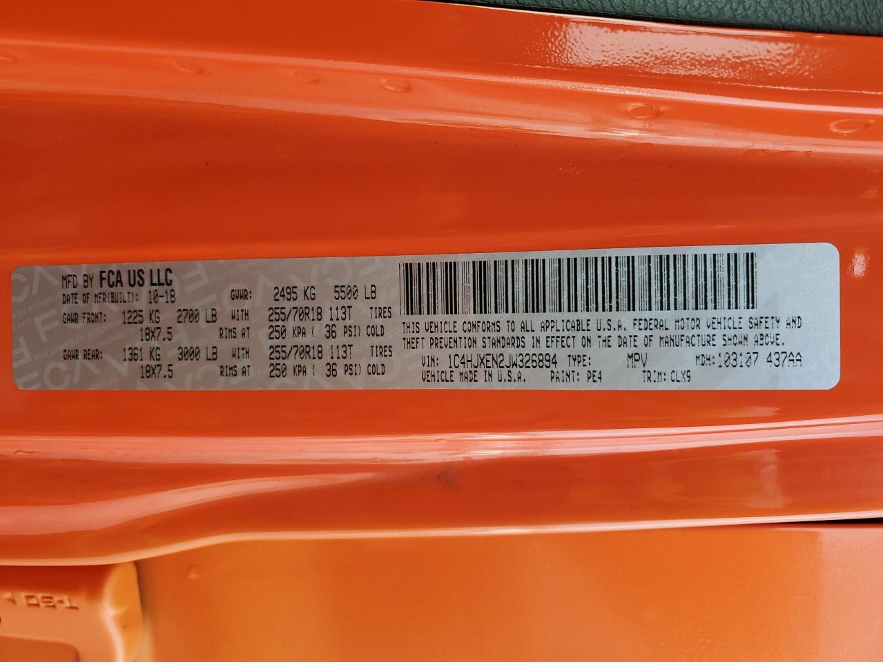 Цвет АпельсиновыйЦилиндры 4Привод 4x4 с задним приводомVIN 1C4HJXEN2JW326894Состояние Заводится и едет (проверено)Повреждения Передняя или задняяДата аукциона 2025-06-24