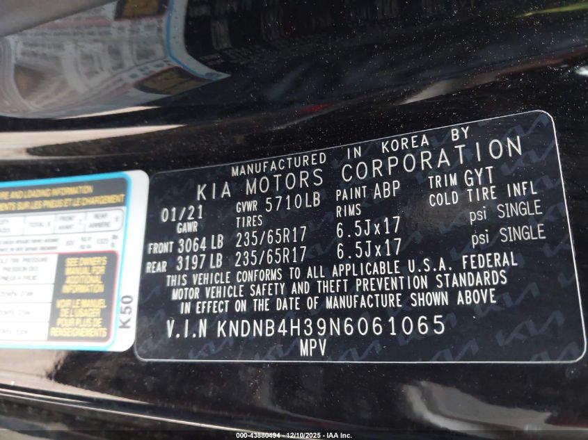 2022 KIA CARNIVAL 2022 року Бензин, 3.5, Передний привод, vin - KNDNB4H39N6061065 из США