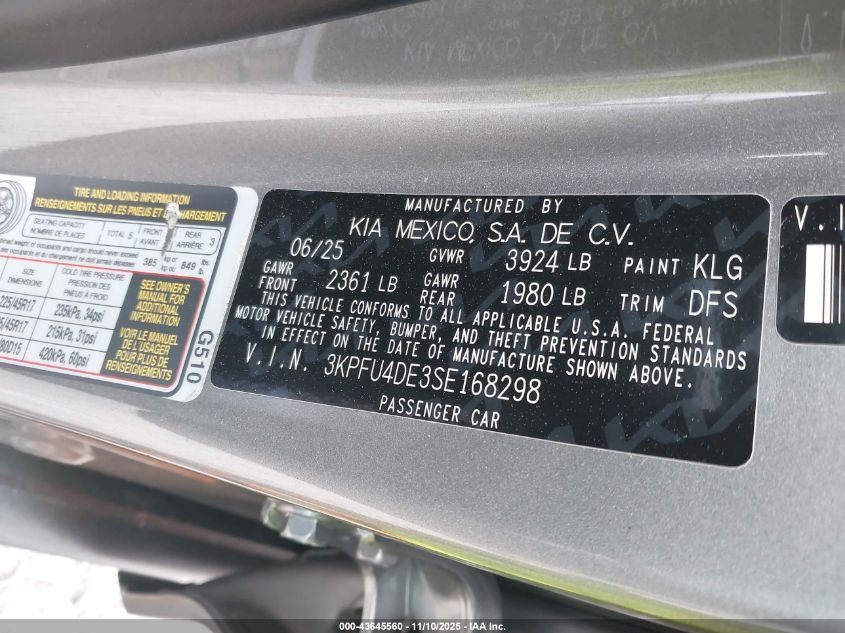 2025 KIA K4 2025 року Бензин, 2.0, Передний привод, vin - 3KPFU4DE3SE168298 из США
