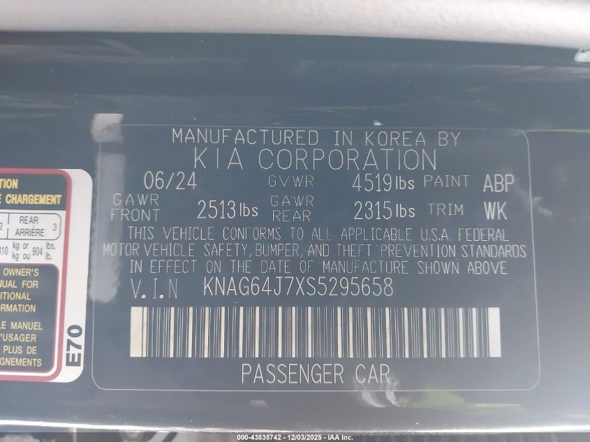 2025 KIA K5 2025 року Бензин, 2.5, Полный привод, vin - KNAG64J7XS5295658 из США