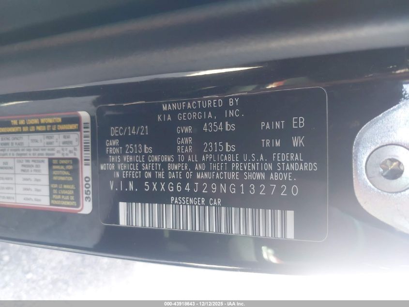 2022 KIA K5 2022 року Бензин, 1.6, Передний привод, vin - 5XXG64J29NG132720 из США