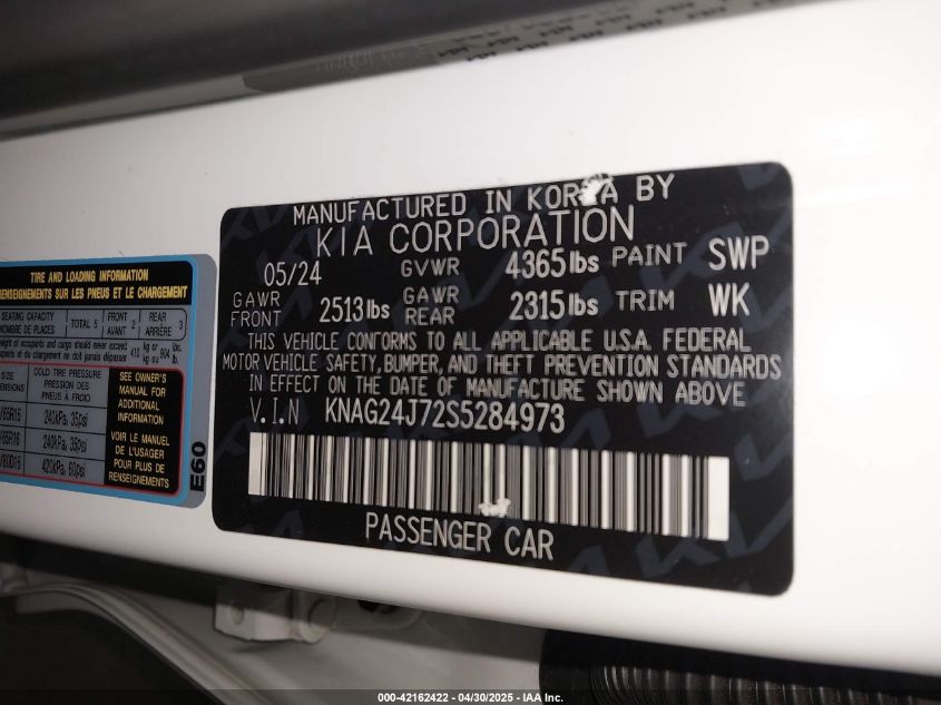 2025 KIA K5 2025 року Бензин, 2.5, Передний привод, vin - KNAG24J72S5****** из США