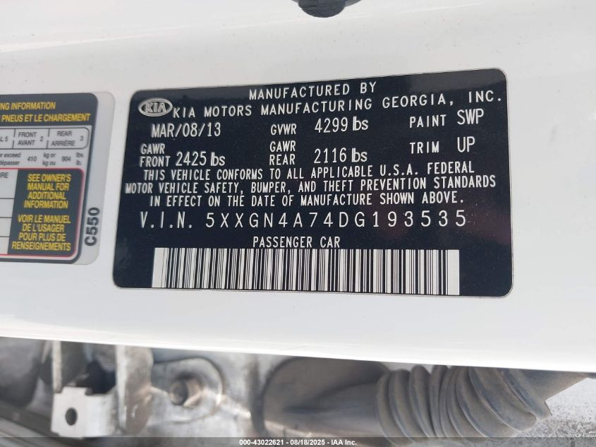 2013 KIA OPTIMA 2013 року Бензин, 2.4, Передний привод, vin - 5XXGN4A74DG193535 из США