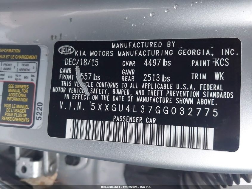 2016 KIA OPTIMA 2016 року Бензин, 2.4, Передний привод, vin - 5XXGU4L37GG032775 из США
