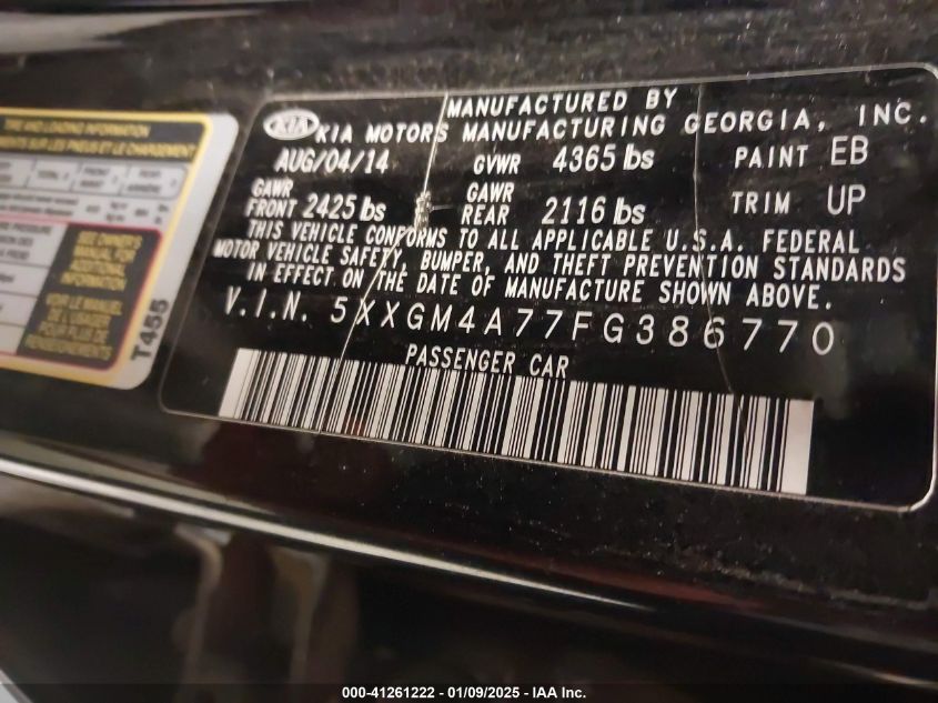 2015 KIA OPTIMA 2015 року Бензин, 2.4, Передний привод, vin - 5XXGM4A77FG****** из США