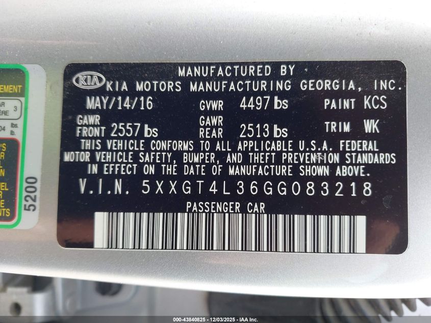 2016 KIA OPTIMA 2016 року Бензин, 2.4, Передний привод, vin - 5XXGT4L36GG083218 из США
