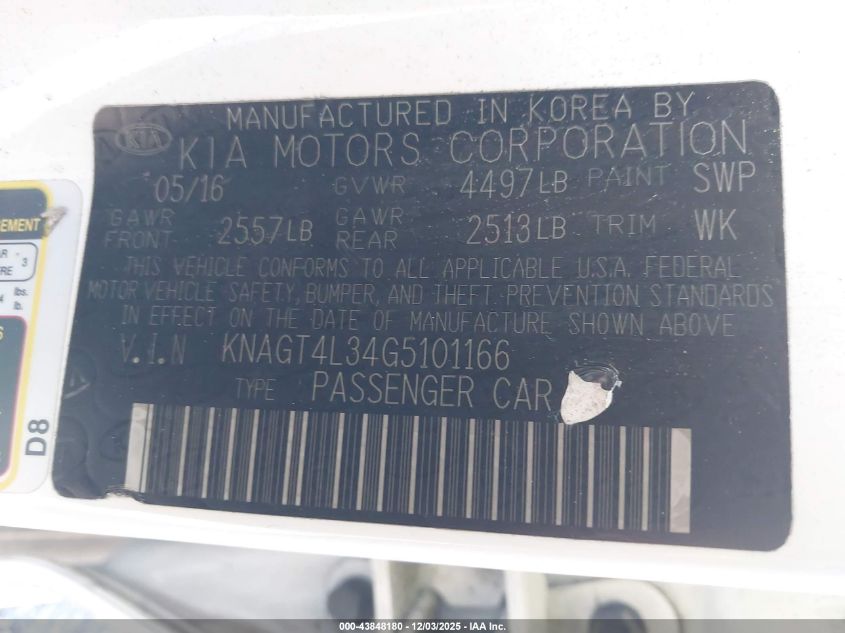 2016 KIA OPTIMA 2016 року Бензин, 2.4, Передний привод, vin - KNAGT4L34G5101166 из США