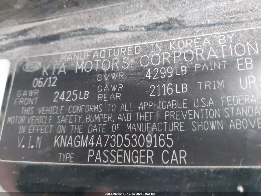 2013 KIA OPTIMA SX