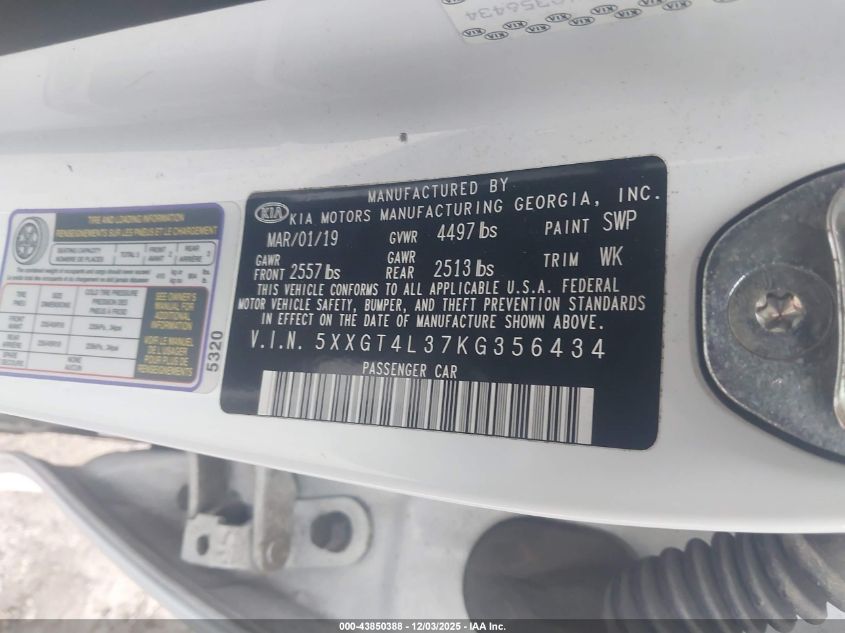 2019 KIA OPTIMA 2019 року Бензин, 2.4, Передний привод, vin - 5XXGT4L37KG356434 из США