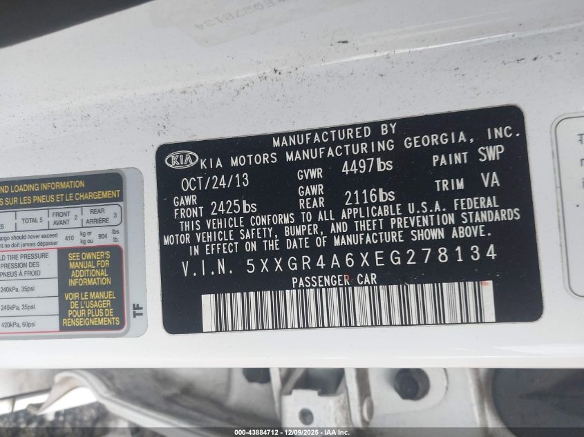 2014 KIA OPTIMA 2014 року Бензин, 2.0, Передний привод, vin - 5XXGR4A6XEG278134 из США