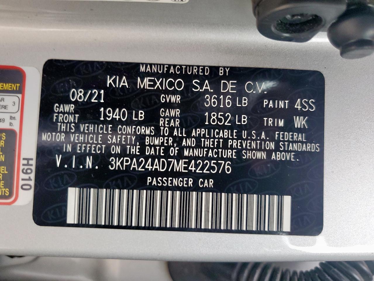 2021 KIA RIO 2021 року Бензин, 1.6, , vin - 3KPA24AD7ME422576 из США
