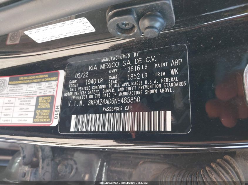 2022 KIA RIO 2022 року Бензин, 1.6, Передний привод, vin - 3KPA24AD6NE485850 из США