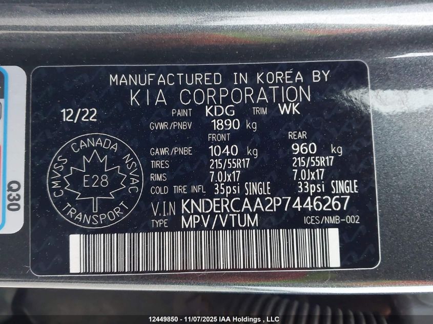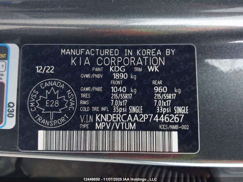Цвет СерыйЦилиндры 4Привод Полный приводVIN KNDERCAA2P7446267Состояние Заводится и едет (проверено)Повреждения Левая сторонаДата аукциона 2025-12-08