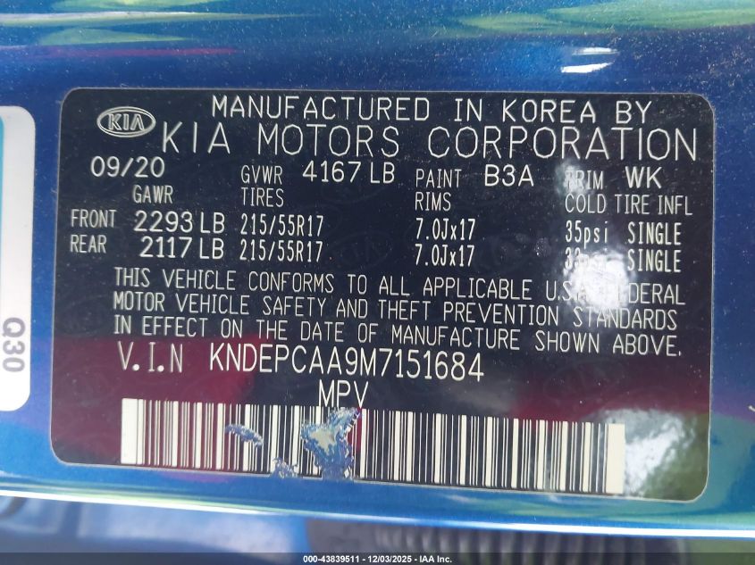 2021 KIA SELTOS 2021 року Бензин, 2.0, Полный привод, vin - KNDEPCAA9M7151684 из США
