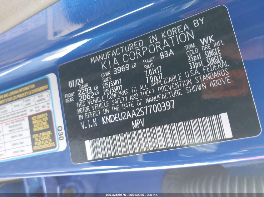 Цвет СинийЦилиндры 4Привод Передний приводVIN KNDEU2AA2S7700397Состояние Заводится и едет (проверено)Повреждения Передняя или задняяДата аукциона 2025-10-21