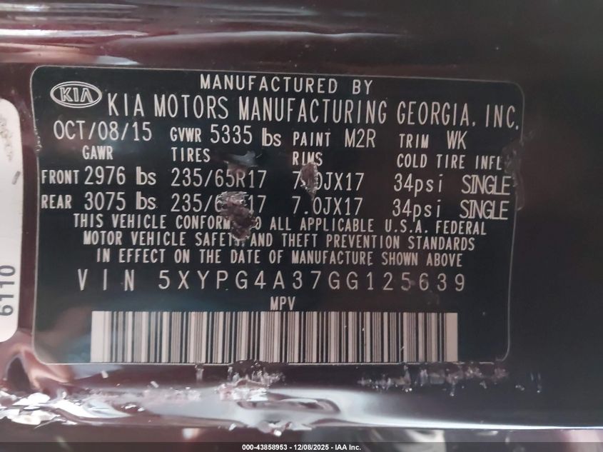2016 KIA SORENTO SX