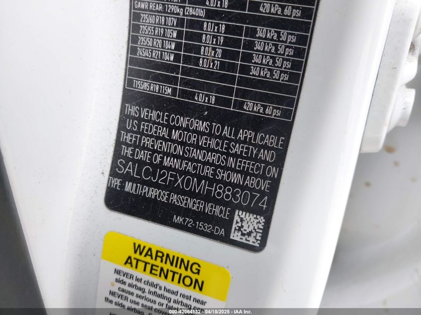 2021 LAND ROVER DISCOVERY 2021 року Бензин, 2.0, Полный привод, vin - SALCJ2FX0MH****** из США