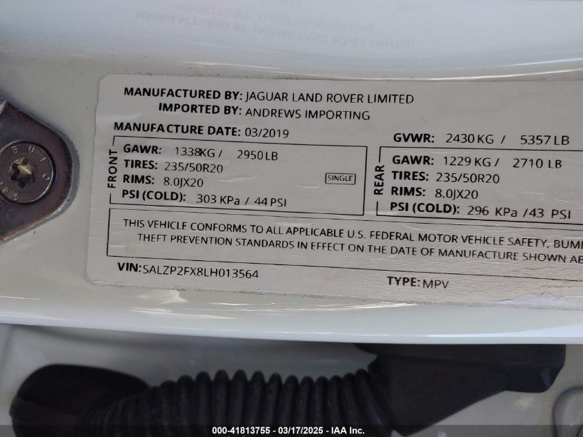 2020 LAND ROVER RANGE ROVER EVOQUE 2020 року Бензин, 2.0, Полный привод, vin - SALZP2FX8LH****** из США
