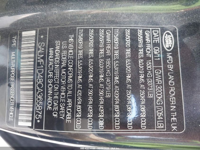 2012 LAND ROVER RANGE ROVER 2012 року Бензин, 5.0, Полный привод, vin - SALMF1D48CA****** из США