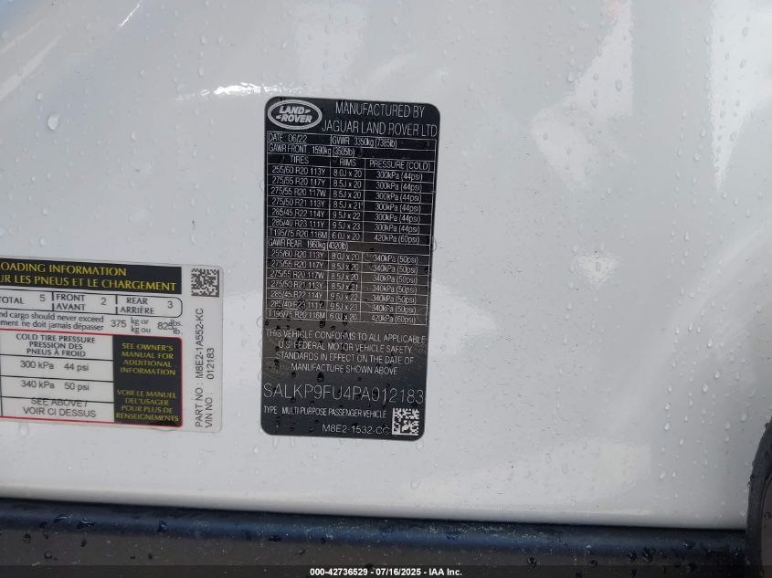 2023 LAND ROVER RANGE ROVER 2023 року Бензин, 3.0, Полный привод, vin - SALKP9FU4PA****** из США