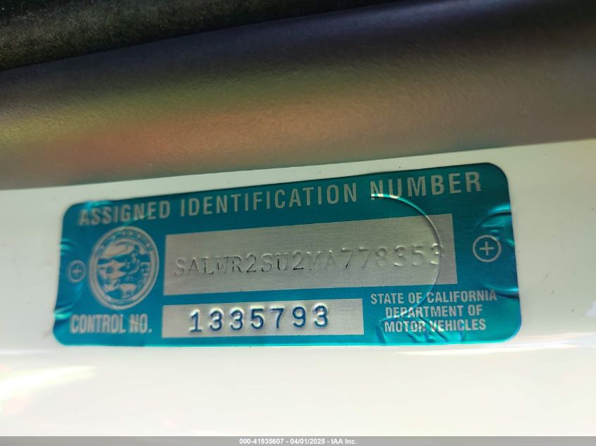 Цвет БелыйЦилиндры 6Привод Полный приводVIN SALWR2SU2MA778353Состояние Заводится и едет (проверено)Повреждения ВандализмДата аукциона 2025-10-21