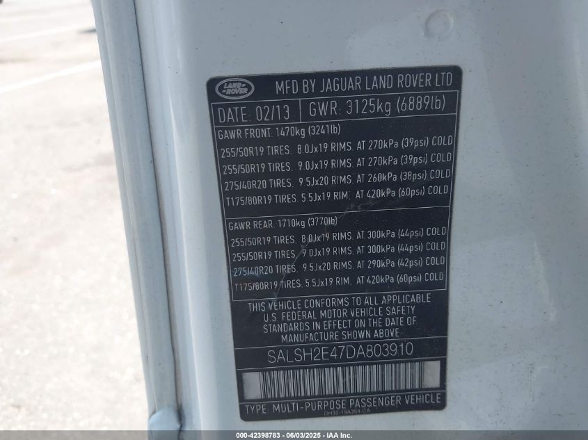 2013 LAND ROVER RANGE ROVER SPORT 2013 року Бензин, 5.0, Полный привод, vin - SALSH2E47DA****** из США
