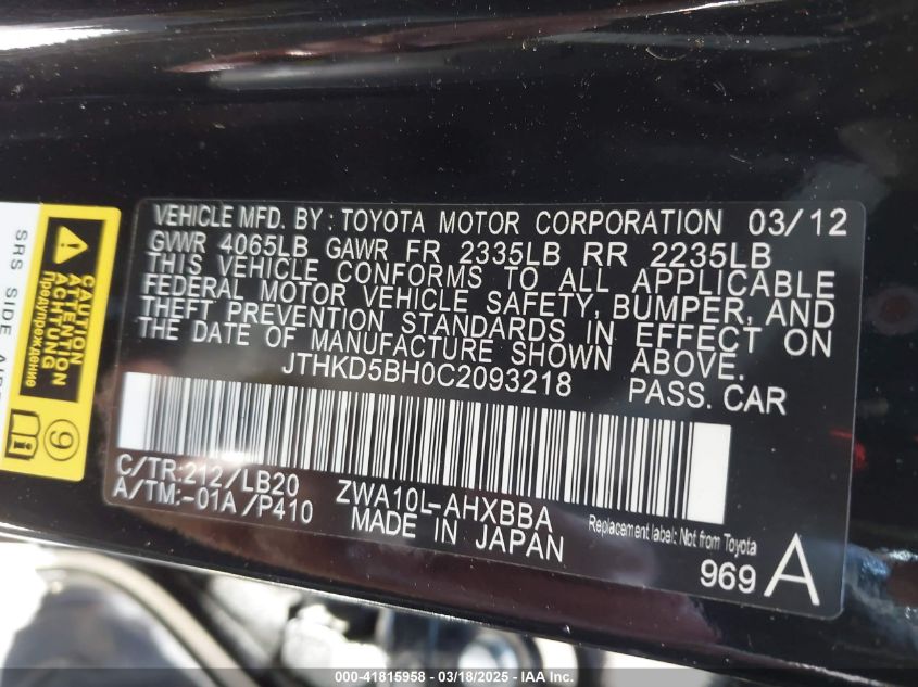 2012 LEXUS CT 200H 200