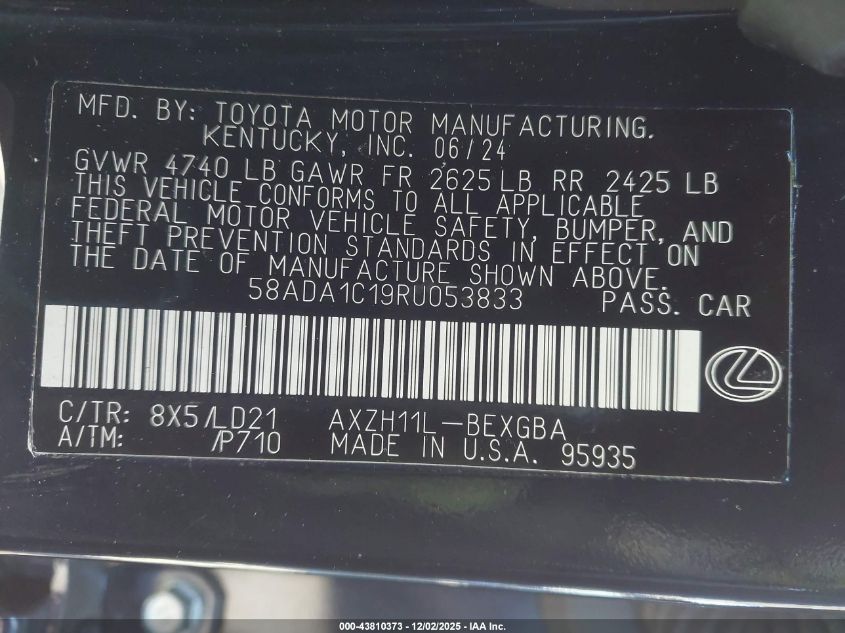 2024 LEXUS ES 300H 2024 року Гибрид, 2.5, Передний привод, vin - 58ADA1C19RU053833 из США